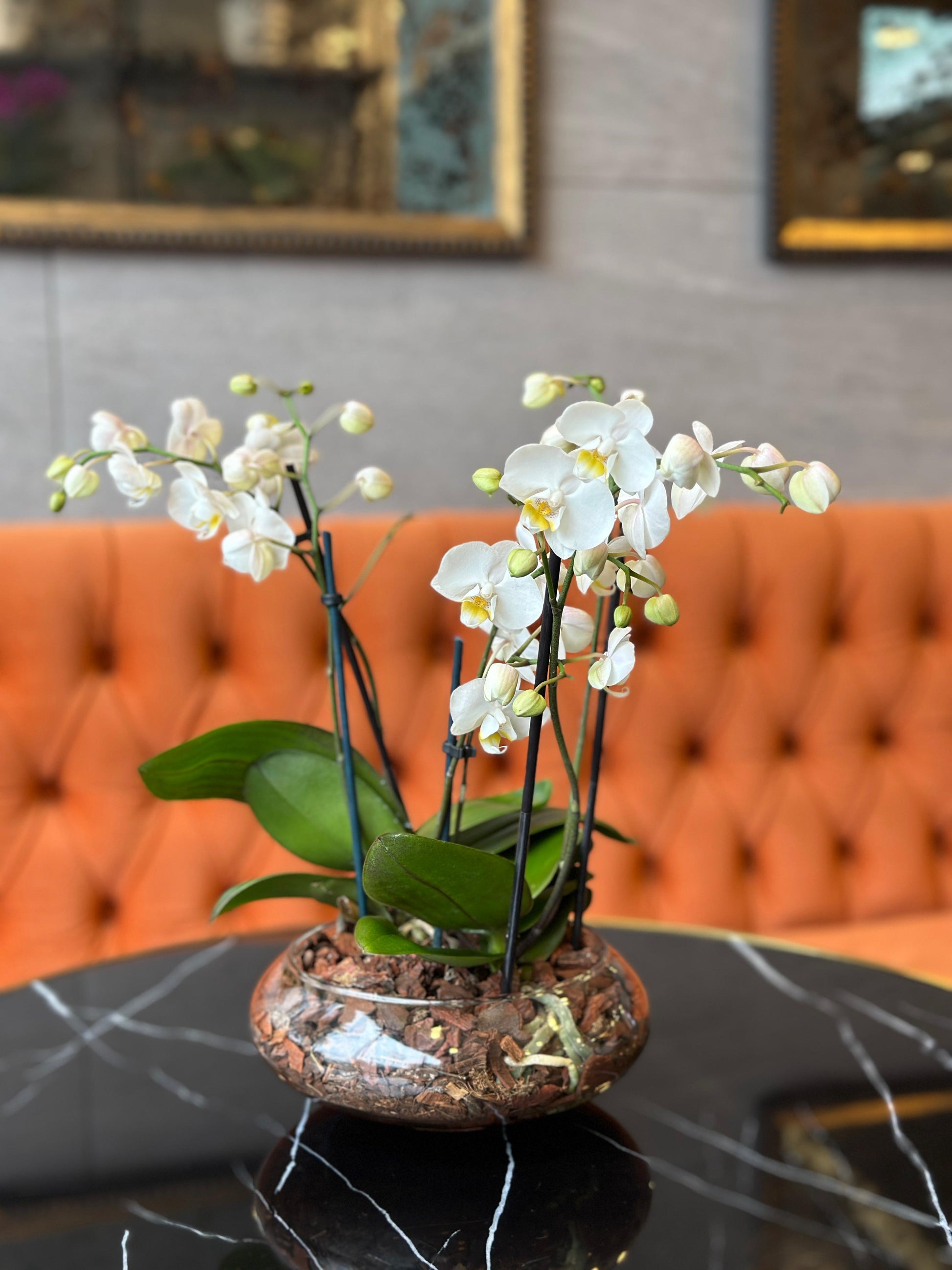Multifloral Garden es un arreglo de orquídeas perfecto para decorar y dar presencia a espacios reducidos o que requieren un elemento natural de baja altura sin sacrificar volumen y calidad.